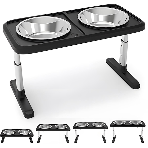 Adjustable Height Raised Pet Stand Feeder with 2 Stainless Steel Bowls