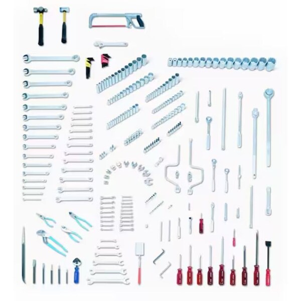 Fractional/Metric Master Tool Set, Tool Storage Type None, Tools Only, Measurement Type Metric/SAE, Drive Size 1/4in; 3/8in; 1/2in; 3/4, Number of Pieces 278, Pliers Included Diagonal Cutting Pliers, Long Nose Pliers, Slip Joint Plier, Tongue Plier