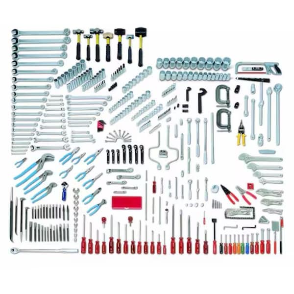 Mega Fractional Master Tool Set, Tool Storage Type Tool Box, Measurement Type SAE, Drive Size 1/4in; 3/8in; 1/2in; 3/4in, Number of Pieces 425, Pliers Included (4) Locking Pliers, (4) Tongue & Groove Pliers, (5) Long Nose Pliers, Diagonal Cutting Pliers, Linemens Plier, Retaining Ring Plier