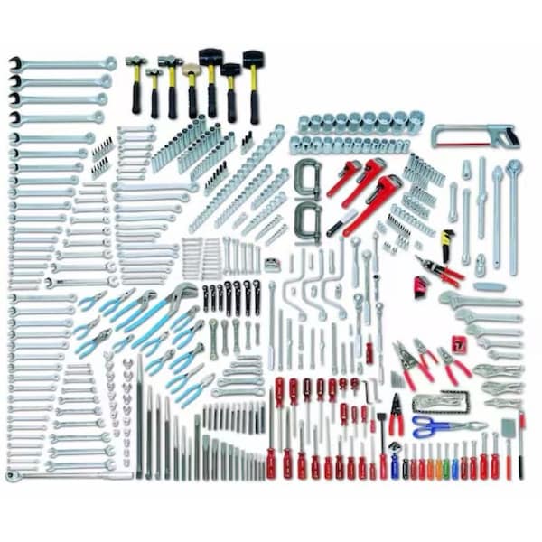Mega Fractional/Metric Master Set, Tool Storage Type None, Tools Only, Measurement Type Metric, Drive Size 1/4in; 3/8in; 1/2in; 3/4, Number of Pieces 556, Pliers Included (2) Diagonal Cutting Plier, (2) Slip Joint Pliers, (4) Locking Pliers, (4) Long Nose Pliers, (4) Tongue & Groove Pliers, Linemens Plier, Retaining Ring Plier 3 Piece Set