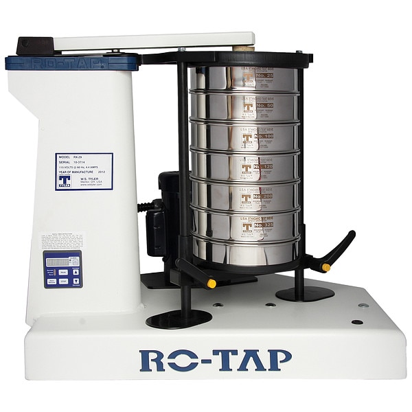 Mechanical Sieve Shaker, Sieve Diameter 8 in, Fits Number of Full Size Sieves 6, Fits Number of Intermediate Size Sieves Not Applicable, Fits Number of Half Size Sieves 13, ASTM E-11, Timer Range 99 min, Timer Type Digital, Mounting Required No, 1/4 hp HP, Power Required 115 V AC, Special Features Each Unit is Test Run and Serialized Prior to Shipment, Includes Hammer Plug, Power Cord, Manufacturers Warranty Length 1 yr