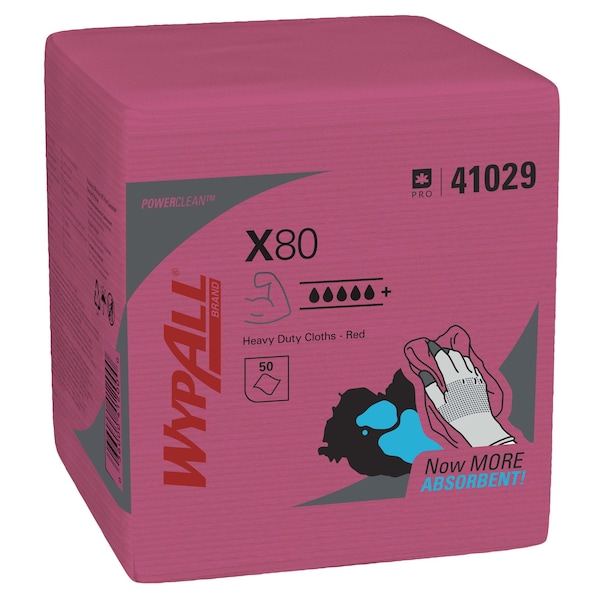 - 50-Sheets/Pack; WypAll® PowerCleanTM X80 Heavy Duty Cloths; 4-Packs/Case; 200-Sheets/Case; Quarterfold; Extended Use Towels; Red