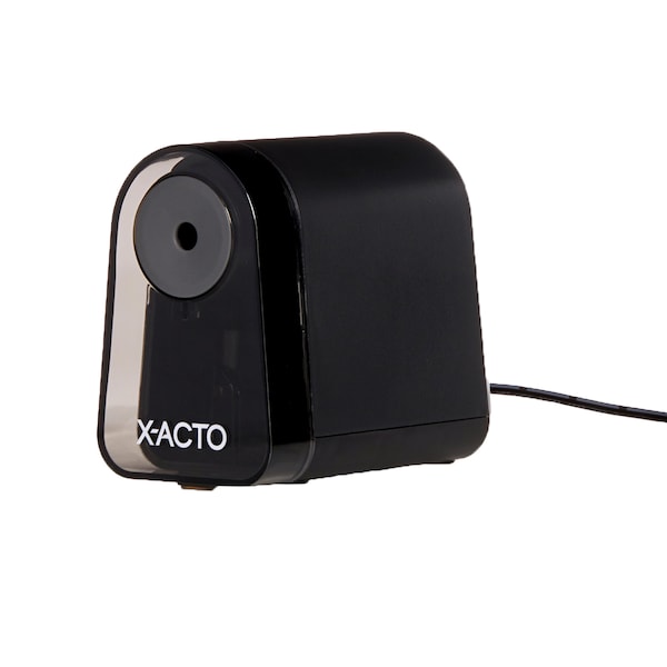 Spend less time sharpening and more time writing the break resistant X-ACTO® Mighty Mite® Pencil Sharpener. With the Pencil Saver® feature, this electric pencil sharpener prevents over-sharpening to keep tips from breaking and frustration from setting in. A slip-resistant bottom keeps the pencil sharpener steady when in use. Finally, the SafeStart® electric motor stops when the easy-to-empty shavings bin is removed. It's also compatible with colored pencils. Stay sharp with X-ACTO, the #1 electric pencil sharpener brand!