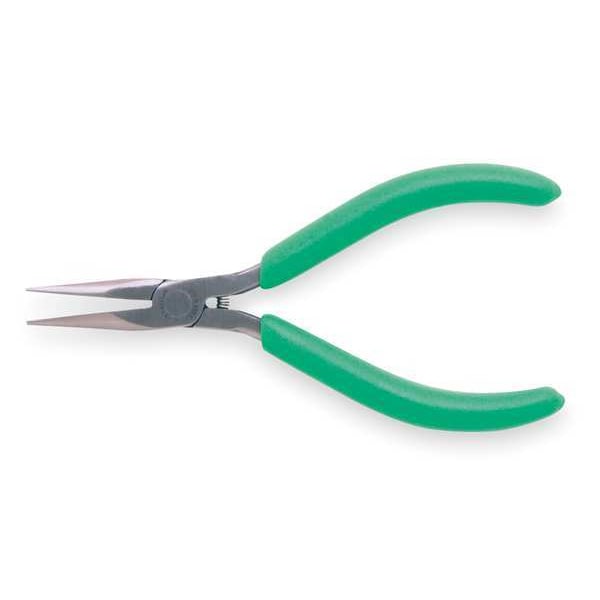 Long Nose Plier, Plier Type Needle Nose Pliers, Nose Shape Needle, Jaw Bend 0 Degrees , ESD-Safe Yes, Overall Length 5 1/2 in, Maximum Jaw Opening 1 in, Jaw Length 1 3/4 in, Tip Width 1/8 in, Insulated No, Non-Sparking No, Precision Yes, Voltage Rating Not Rated, Application Electronic Assembly Requirements, Cutting Capacities Not Specified, Features Copper Alloy Joint Rivet, Ergonomic Handle, Thin Nose, Grip Material Plastisol, Grip Style Standard Cushion, Handle Color Blue