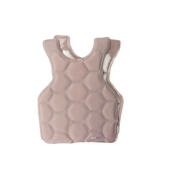 The onyx cool safety pro vest protects against heat stress and provides cooling relief to regulate core body temp. The plant-based cooling phase change material (pcm) pods are sealed into an anatomically-designed vest. Two panels, one size, with adjustable straps.convenient: no need to remove, refrigerate and re-insert pcm packets. Vest panels re-cool in 20 minutes (without refrigeration) in room or vehicle temperatures below 80 f. Also reactivates in cooler of ice. Long lasting: cooling lasts 2-3 hours in temps below 80f and 45-60 minutes in extreme heat. Ideal for use in complying with osha worker protection and heat stress regulations.
