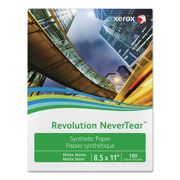 Xerox® Revolution NeverTearTM is an exceptional synthetic paper for unmatched durability. Holds up to wet weather, chemicals and rough handling, while looking great. Engineered with a premium coating for static control and a superior surface for printing high-impact images and graphics. Great for signs, menus, manuals and much more.
