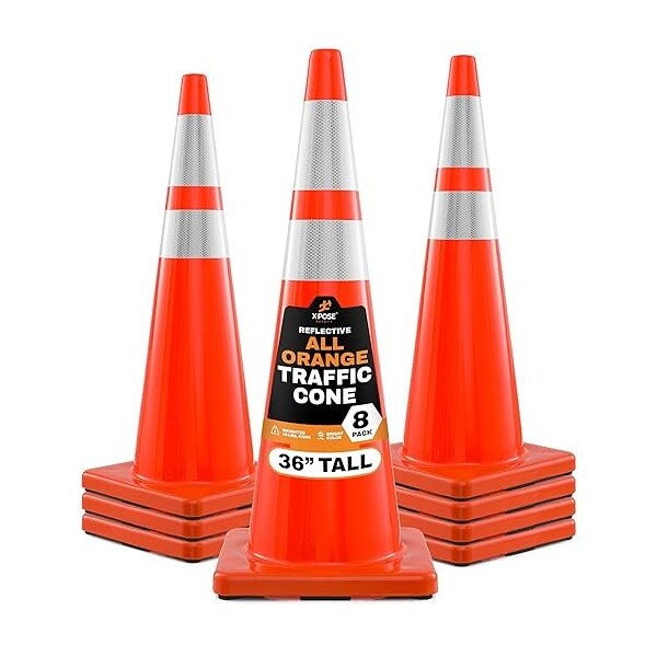 36 Inch Orange Traffic Cones with 6in and 4in Collars, DOT Approved, 8PK