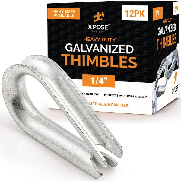 Tackle any project that involves wire rope with ease - no matter how large or small - with Xpose Safety thimbles and premium wire rigging hardware. Defined by high-quality workmanship and priced to meet the needs of individuals, small businesses, and large operations alike, Xpose Safety is your #1 leader in jobsite safety and efficiency.PRODUCT FEATURES:Available in 1/8", 3/32", and 3/8"Fits Same Diameter Wire RopePrevents Abrasion and CrushingUse to Create Tight LoopsTons of Personal and Industrial ApplicationsXpose Safety thimbles are designed for the safety and longevity of your wire rope. Creating un-secured loops at the end of wire rope for mounting purposes can become dangerous when the rope rubs and gets over-stressed. This will lead to weakening and a potential catastrophic failure of the system.MANY APPLICATIONS- Residential- Personal- DIY- Professional- Commercial- Industrial- Aviation- Marine- MilitarySPECIFIC USESRailings, walkways, stairways, docks, sailboat rigging, boat anchors, hanging of lights, mounting of shades and canopies, clotheslines, outdoor gear, camping, and much more.* * Use with Xpose Safety brand wire rope and wire rope clamps! * *Overcome workplace hazards and dangerous job site challenges with the reliable safety & security of Xpose Safety products!