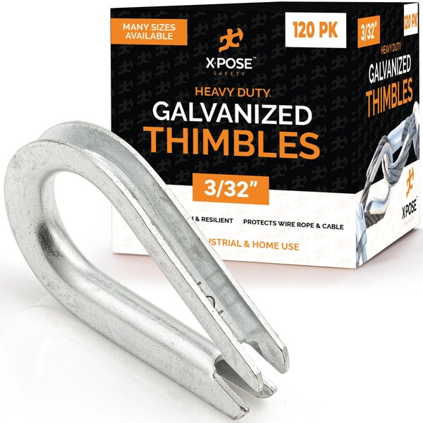 Tackle any project that involves wire rope with ease - no matter how large or small - with Xpose Safety thimbles and premium wire rigging hardware. Defined by high-quality workmanship and priced to meet the needs of individuals, small businesses, and large operations alike, Xpose Safety is your #1 leader in jobsite safety and efficiency.PRODUCT FEATURES:Available in 1/8", 3/32", and 3/8"Fits Same Diameter Wire RopePrevents Abrasion and CrushingUse to Create Tight LoopsTons of Personal and Industrial ApplicationsXpose Safety thimbles are designed for the safety and longevity of your wire rope. Creating un-secured loops at the end of wire rope for mounting purposes can become dangerous when the rope rubs and gets over-stressed. This will lead to weakening and a potential catastrophic failure of the system.MANY APPLICATIONS- Residential- Personal- DIY- Professional- Commercial- Industrial- Aviation- Marine- MilitarySPECIFIC USESRailings, walkways, stairways, docks, sailboat rigging, boat anchors, hanging of lights, mounting of shades and canopies, clotheslines, outdoor gear, camping, and much more.* * Use with Xpose Safety brand wire rope and wire rope clamps! * *Overcome workplace hazards and dangerous job site challenges with the reliable safety & security of Xpose Safety products!
