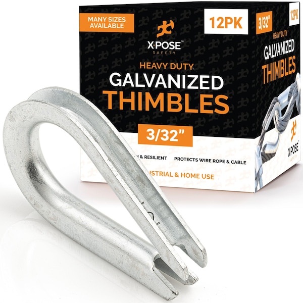 Tackle any project that involves wire rope with ease - no matter how large or small - with Xpose Safety thimbles and premium wire rigging hardware. Defined by high-quality workmanship and priced to meet the needs of individuals, small businesses, and large operations alike, Xpose Safety is your #1 leader in jobsite safety and efficiency.PRODUCT FEATURES:Available in 1/8", 3/32", and 3/8"Fits Same Diameter Wire RopePrevents Abrasion and CrushingUse to Create Tight LoopsTons of Personal and Industrial ApplicationsXpose Safety thimbles are designed for the safety and longevity of your wire rope. Creating un-secured loops at the end of wire rope for mounting purposes can become dangerous when the rope rubs and gets over-stressed. This will lead to weakening and a potential catastrophic failure of the system.MANY APPLICATIONS- Residential- Personal- DIY- Professional- Commercial- Industrial- Aviation- Marine- MilitarySPECIFIC USESRailings, walkways, stairways, docks, sailboat rigging, boat anchors, hanging of lights, mounting of shades and canopies, clotheslines, outdoor gear, camping, and much more.* * Use with Xpose Safety brand wire rope and wire rope clamps! * *Overcome workplace hazards and dangerous job site challenges with the reliable safety & security of Xpose Safety products!