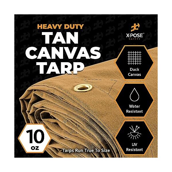 - • STURDY HEAVY DUTY CANVAS TARP - Made from sturdy, thick, poly cloth fabric. This weighty, plain-but-strong woven canvas is perfect for extreme environments and high-stakes outdoor applications where flawless performance matters.