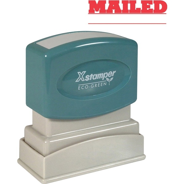 Red ink MAILED Title Stamp is pre-inked for 100,000 impressions and re-inkable for 100,000 more, again and again. Patented cellular inking process delivers clean, consistent impressions. Retractable frame keeps stamp surface away from desktop until ready to use. Impression size is 1/2" x 1-5/8". Pre-inked stamp contains a high percentage of recycled material.