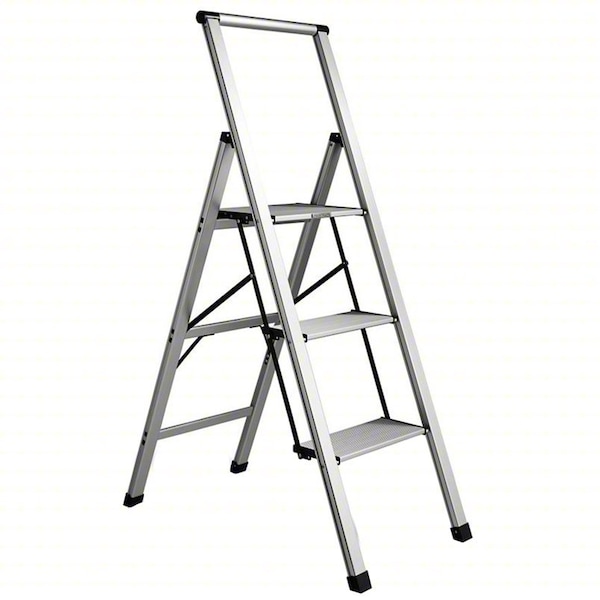 Light Step Stool, 3 Steps, 250 lb Load Capacity, 42 in Overall Height, Aluminum, Aluminum