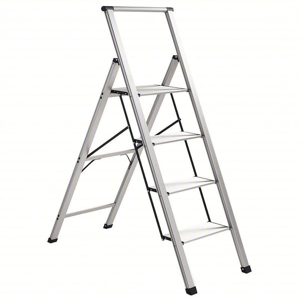 Light Step Stool, 4 Steps, 250 lb Load Capacity, 51 in Overall Height, Aluminum, Aluminum