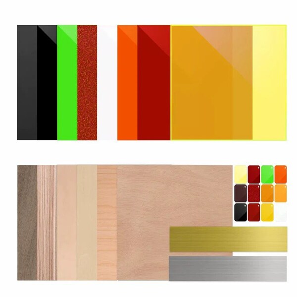 Details: A must-have material pack with 17 kinds of popular materials, 34 pcs laser materials. Perfect for getting started with laser machines such as xTool S1.Practical kit: This package contains common materials such as acrylic, plywood, and two-color boards. It can be processed directly without using any accessories.Compatible models: xTool S1 laser material kit is a laser material package suitable for xTool S1. It collects various standard and practical laser materials and is ideal for all S1 users.Attention: For safe use of the ABS product, please operate it in a well-ventilated area and wear a protective mask. It is recommended to use it with the Air Assist Set.Attention: Due to the different colors of each computer, there will be some errors between the color and the actual color.Electronic Manual: Provides recommended processing parameters.MaterialAcrylic, Laser Engraving Two-Tone Plastic Nameplate, PlywoodWeight4.0kgUsing MethodDiode Laser-Laser Engraving, Diode Laser-Laser CuttingIncludes 1 x 1/8 Fluorescent Yellow Translucent Acrylic, 1 x 1/8 Ruby Red Translucent Acrylic, 1 x 1/8 Frosted Black Acrylic, 1 x 1/8 Orange Acrylic, 1 x 1/8 Pearl White Acrylic, 1 x 1/8 Red Glitter Translucent Acrylic, 1 x 1/8 Black Acrylic, 1 x 1/8 Grass Green Glossy Acrylic, 12 x 1/8 General Acrylic Sample Set, 1 x 1/8 Walnut Plywood, 1 x 1/8 Ebony Plywood, 1 x 1/8 Birch Plywood, 1 x 1/8 Basswood Plywood, 1 x 1/8 Cherry Plywood, 1 x 1/8 Mahogany Plywood, 4 x 1/20 Laser Engraving Two-Tone Plastic Nameplate Brushed Silver to Black, 4 x 1/20 Laser Engraving Two-Tone Plastic Nameplate Brushed Gold to Black.