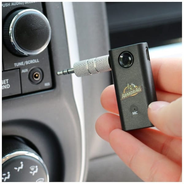 Connect Bluetooth-Compatible Devices To Play Music: Link your compatible devices to the receiver to play music through your car's stereo setup. Our item has a range of 33 feet so you can connect whether in the front or back seat. Make Safe Hands-Free Calls: Our receiver also supports hands-free calls with its built-in microphone. Easily Fits To Most Car's Auxiliary Ports: Use the 3.5mm Audio Adapter and link it to your vehicle's auxiliary port without issue. Rechargeable Battery: Our item is powered by a lithium-ion battery. When the power runs low, connect it to your included Micro-USB Cable and recharge instantly.With the Armor All Bluetooth Receiver, you can connect with multiple devices for the ultimate driving experience. Link to your Bluetooth-compatible devices to play music through your car's stereo. Our device has a range of 33 feet allowing you to connect whether in the front or back seat. A built-in microphone allows you to connect your phone for safe hands-free calls while you're driving. Just connect it to the auxiliary port on your vehicle's setup and you're all set. The 3.5mm Audio Adapter easily fits most ports without issue. Our receiver is also powered by a rechargeable lithium-ion battery and comes with a Micro-USB Cable to recharge when it runs low. Stream your favorite songs or have safe hands-free calls with the Bluetooth Receiver.