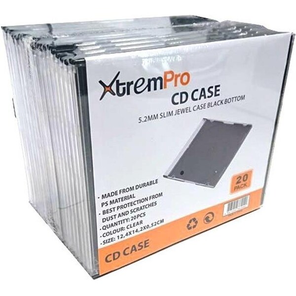 Xtrempro 11070 0.2 in. CD DVD Slim Jewel Storage Replacement Case; Clear with Black Bottom - Pack of 20 (Discontinued)