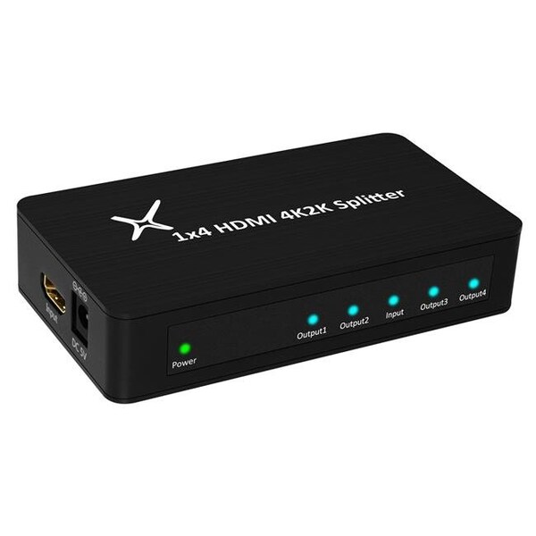 XtremPro HDMI Splitter Slim 1x4 Ports, 1-in-4 out Aluminum Splitter with AC Adapter, Supports HDTV, 4K2K 1080P, Full 3D for PS, Xbox, DVD HDTV Projector etc - Black