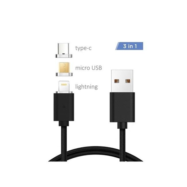 Xtrempro 11172 3-in-1 Magnetic Cable Type-C Micro USB & Lightning; 3 ft. - Black (Discontinued)