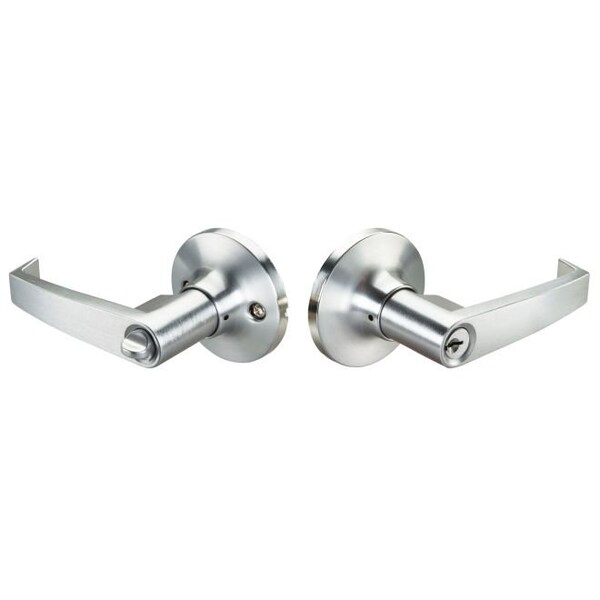 Entry Lock with Edisto Lever with Kwikset Keyway Satin Chrome Finish