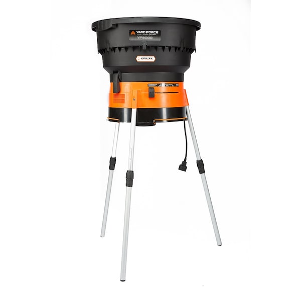 Powerful 13A, 8000 rpm, Electric Motor Leaf Mulcher. Includes adjustable settings for dry and wet leaves. Can shred 12 bags of leaves to 1. Uses standard .095 in. trimmer line. Cuts 12 in. lines to thread into the YF8000 shredder head. Individually adjustable legs allow leveling on all terrain for safe and stable operation. Attached bungee cord bag clamp adapts to both paper and plastic waste bags. All components stack inside each other for compact and easy storage weighs under 15 lbs. for effortless portability. Includes bonus hand rake set, 10 shredder replacement lines, bungee cord and safety goggles.