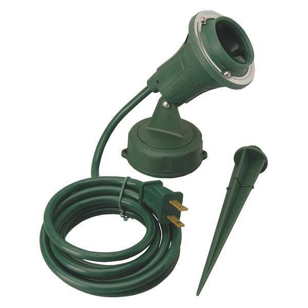 Floodlight Base, Fixture Mounting Location Ground, Fixture Wattage 150 W, Voltage 120V AC, Fixture Housing Color Green, Light Technology Incandescent, Mount Type Ground Stake, Surface, Color Temperature Not Applicable, Height 10 in, Housing Material Plastic, Standards cUL