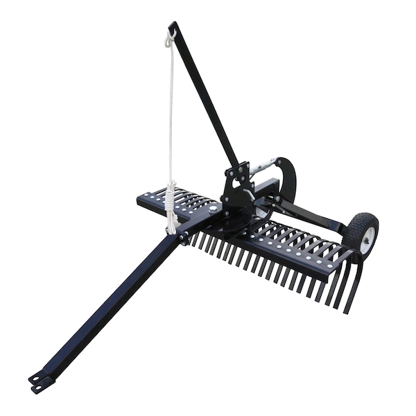 Yard Tuff’s 48” Landscape Rake has a working width of 48” to help you cover a wide area. The twenty-four, heat-treated tines are durable and reliable and measure 5/16” x 1”. The Yard Tuff rake features turnbuckle adjustment for the operating depth, giving you versatility. This rake is especially designed to allow you to work close to fences, walls, and other objects, letting you cover the most ground. Included with this rake is a pull rope, allowing you to conveniently raise and lower the rake as you need it. Easily attach and pull this Landscape Rake with your ATV, UTV, or utility tractor. Ideal for grading, leveling, removing rocks, breaking up clumps, and so much more!