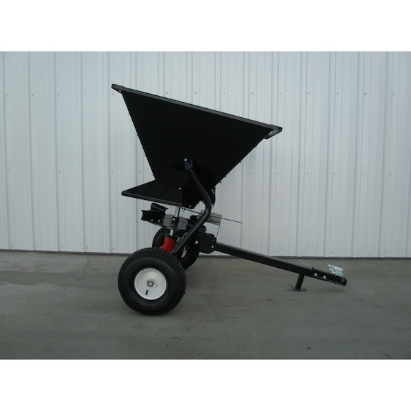 Field Tuff brings you a spreader that can handle large jobs with the FTF-350TST Tow-Behind Broadcast Spreader. This spreader has a capacity of 350 lbs to easily handle large jobs, allowing you to cover a larger area. The wide broadcast width saves you time and energy as it spreads seed or fertilizer over a wide area with each pass. This spreader contains three slide opening adjustments with infinite adjustment for each slide to give you greater versatility with your spreader. Adding even more versatility, are the large 15” pneumatic tires that allow you to work and travel over a wide variety of terrains so that you can get the job done, no matter where it is! To make transporting this spreader a breeze, the gear box easily disengages and the 2” ball hitch makes attaching this spreader behind your ATV, UTV, or utility tractor fast and simple. Constructed of all steel, this spreader is heavy duty and durable to suit your toughest needs. Field Tuff’s spreader is the perfect solution to all of your spreading needs, whether it be seed, fertilizer, or salt for winter ice control. This spreader handles it all and is a quality product that you can count on!