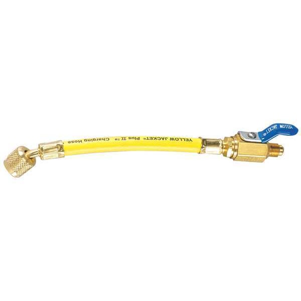 Hose, Connection Size 1/4 in Female, 45 Degrees Angle, Number of Hoses 1, Length 9 in, Color Yellow, Hose Material Rubber, Fitting Material Brass, Working Pressure 800 psi, Burst Pressure 4,000 psi, For Use With Refrigerant Charging and Evacuation