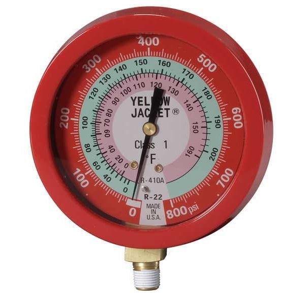 High Side Gauge, Diameter 3 1/2 in, Working Pressure 0 to 800 psi, Connection Size 1/8 in, Color Red, Gauge Type High Side Gauge, Gauge Accuracy +/-1.00 Percent, For Use With R-22, R-410A, Application Replacement Manifold Gauge for Manifold Gauge Sets