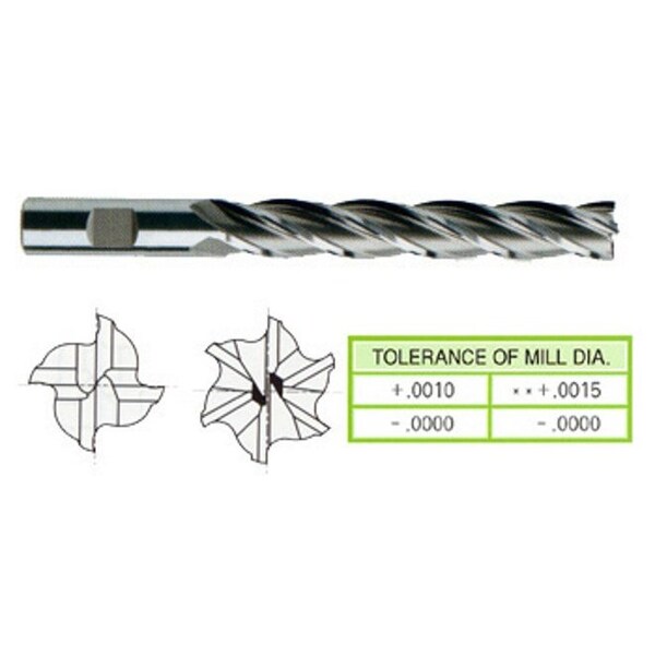6 Flute Extra Long Length Center Cut Tin-Coated 8% Cobalt
