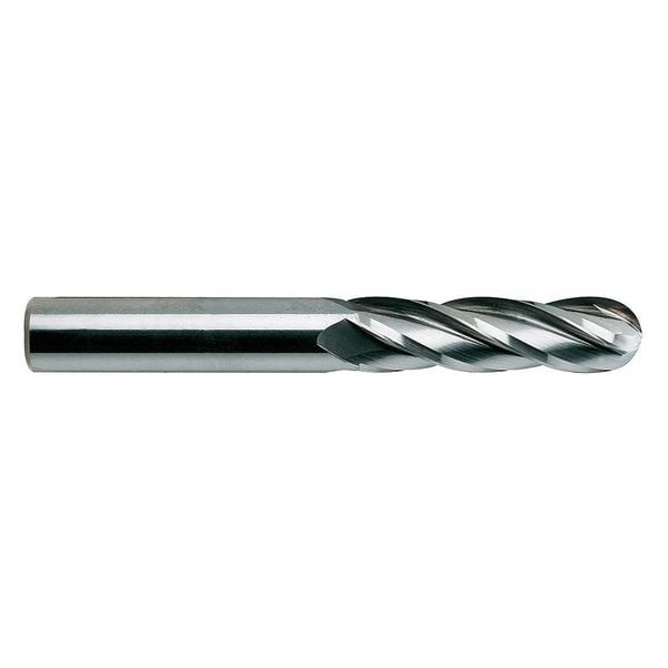 Ball End Mill, 0.125 in Milling Dia., Carbide, TiN, Non-Coolant Through