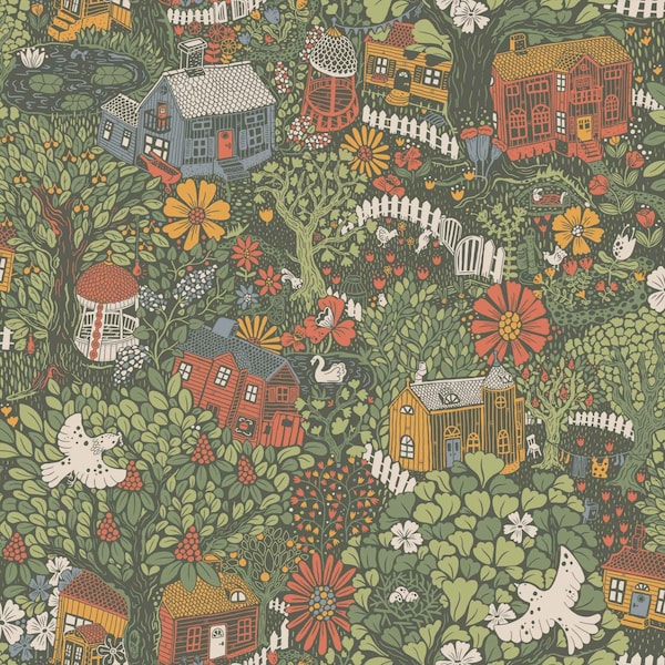 Bygga Bo Dark Green Wallpaper