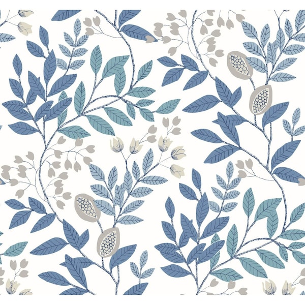 Eden Retreat White and Blue Wallpaper