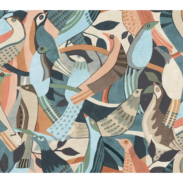 Fauvist Flock Coral and Aqua Wallpaper Sample