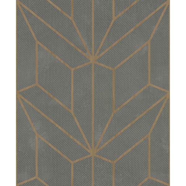 Hammered Diamond Inlay Grey and Wood Wallpaper