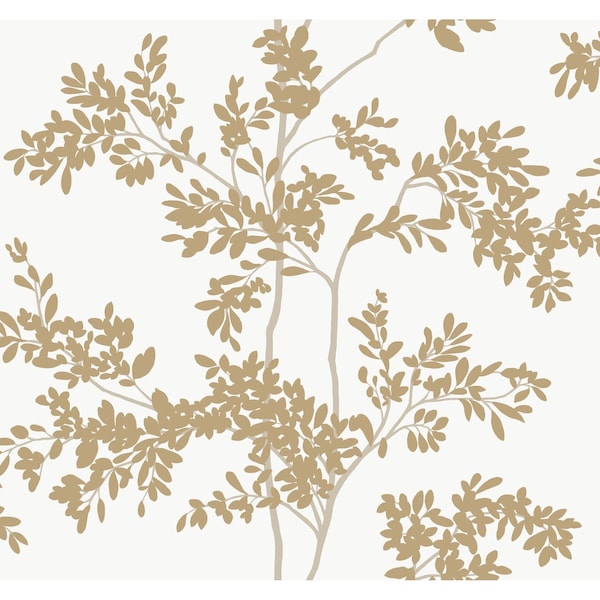 Lunaria Silhouette White and Gold Wallpaper Sample