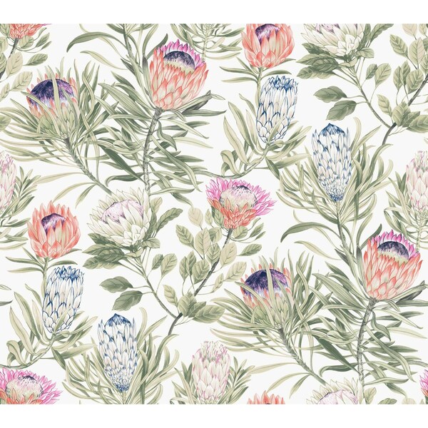 Protea White and Fuchsia Wallpaper