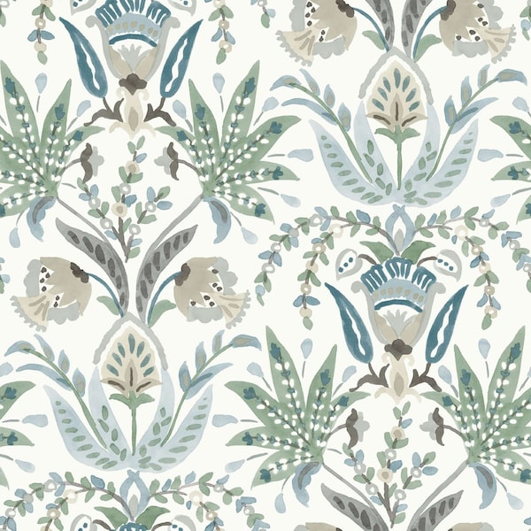Seaside Jacobean Green and Blue Wallpaper