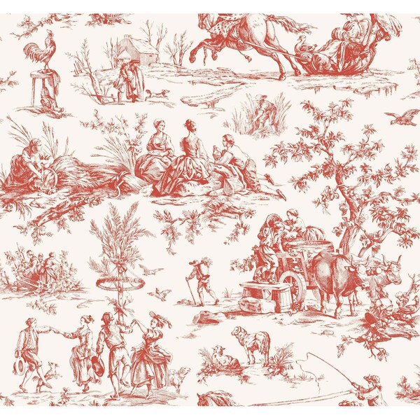 Seasons Toile Scarlet Wallpaper