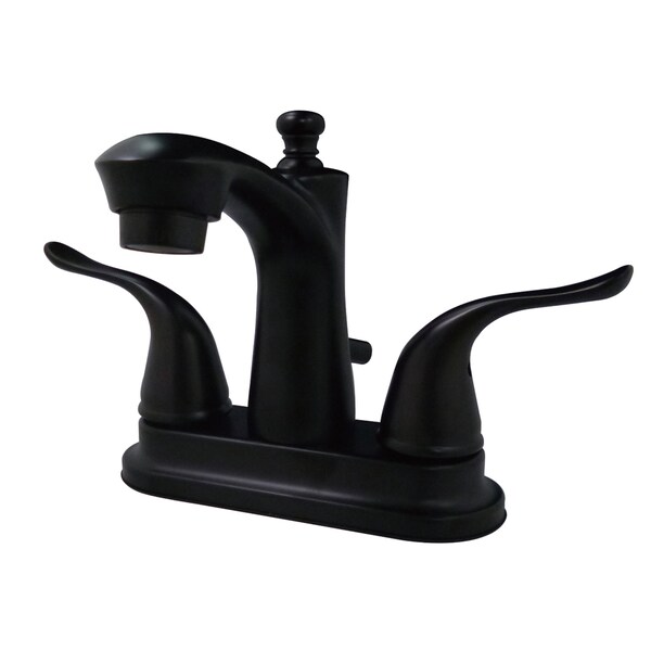 This faucet's modern features create a bold and edgy design in your bathroom. Centerset bathroom faucets are ideal for smaller bathrooms and feature an easy 3-hole installation. The Yosemite 4-Inch Centerset Bathroom Faucet with Retail Pop-Up and its featured sturdy brass construction and premium oil rubbed bronze finish are guaranteed to glamorize your home's modern ensemble for years to come. A matching finish drain is also included.