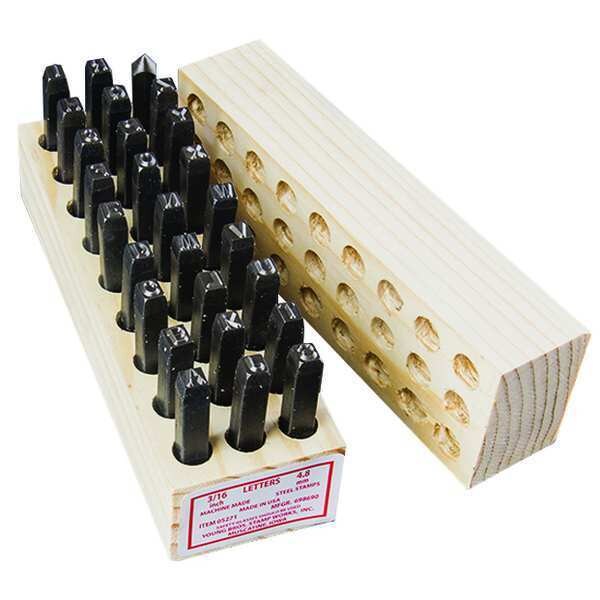 Letter Set, Character Height 1/4 in, Character Type Set Letter Set, Characters Included A to Z, Period (.), Duty Heavy, For Maximum Surface Hardness 50 on A Rockwell C Scale, For Shank Diameter (27) 3/16 in, Holder Length Not Applicable, Holder Shank Size Not Applicable, Impression Character Style Reversed, Includes (27) A to Z, Period (.), Letter Casing Uppercase, Product Type Hand Stamp Kit, Shank Length 3 in, Shank Thickness 7/16 in, Shank Width 7/16 in, Stamp Material Steel