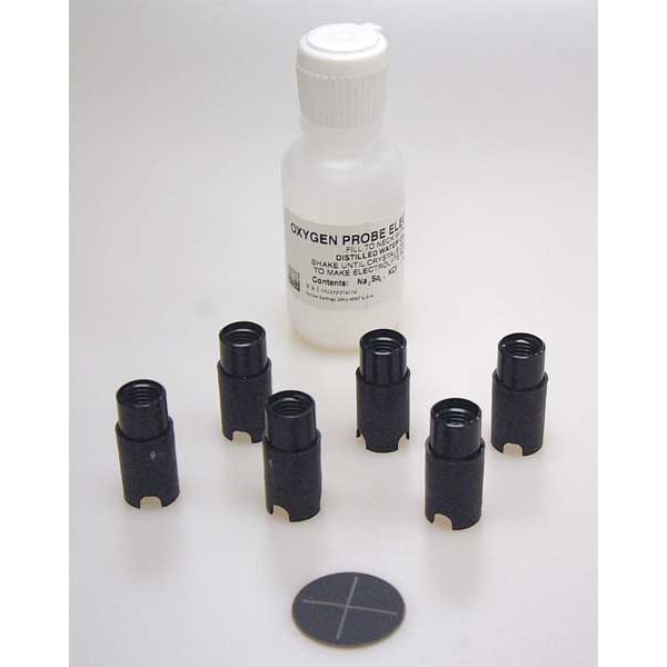 Cap Membrane Kit, For Use With YSI 5203 Polarographic DO Probe (4UYU8), Includes (6) 1.00 Mil PTFE Membranes and Electrolyte (Black Cap)