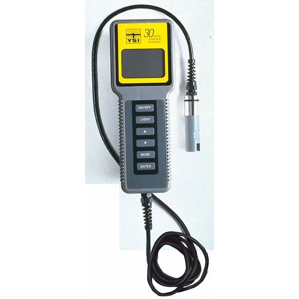 Conduct Salinity Temp Meter, Electric Conductivity Range 0 to 499.9 uS/cm; 0 to 4999 uS/cm; 0 to 49.99 mS/cm; 0 to 200.0 mS/cm, Waterproof No, Automatic Temperature Compensation Yes, Displayed Temperature Range -5 to 95 Degrees C, Salinity Range 0 to 80 ppt, Operating Temp. Range (F) 23 to 203 Degrees , Operating Temp. Range (C) -5 to 95 Degrees , Display Segmented, Auto Power Off No, Memory 50, Calibration 1 Point, Interface None, Cable Length 10, 25, 50, 100'