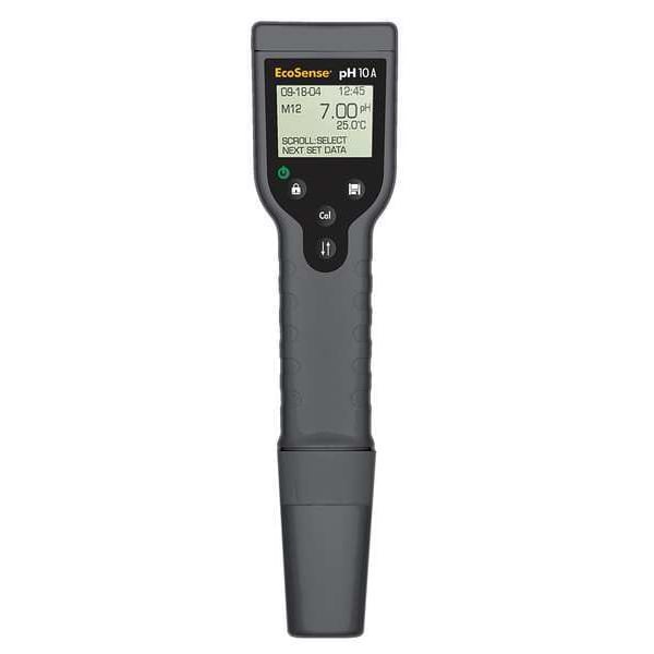 PH Meter, pH Range 0.00 to 14.00, Waterproof IP67, Automatic Temperature Compensation Auto 0.0 Degrees to 100.0 Degrees C or 32.0 Degrees to 212 Degrees F, Displayed Temperature Range 0.0 Degrees to 100 Degrees C, Display Digital, Auto Power Off No, Memory 50 Data Sets, Temperature Compensation Range Auto/Manual 0.0 Degrees to 100.0 Degrees C or 32 Degrees to 212 Degrees F, Calibration Yes, Interface No, Cable Length No Cable, Power Source 4 LR44 Alkaline Battery, Includes Battery