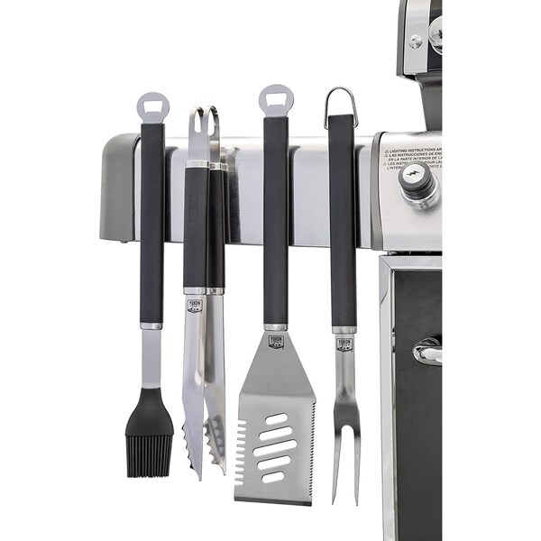 INNOVATIVE DESIGN - Weather resistant, powerful magnets allow you to attach your grilling utensils to your grill for maximum space and ease of useCOMPATIBILTY - Ensure your grill is magnetic before purchasingEASY CLEAN - All components are dishwasher safe for an easy cleanSET INCLUDES - 1 grill fork, 1 multifunctional spatula with a serrated edge, 1 basting brush and 1 set of grill tongsAMAZING UTILITY - Perfect for tailgating, camping, road trips, backyards, patios and kitchens