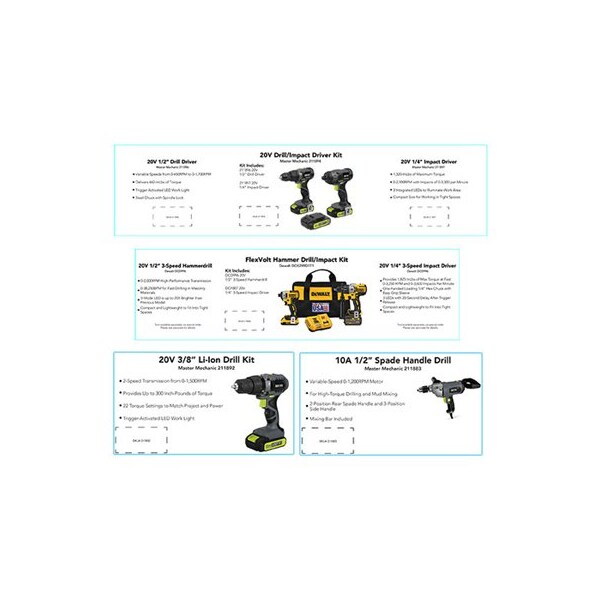 Dewalt, Power Tool Cards, For All 4' Dewalt Power Tool Sets, Includes Individual Product Cards, Larger, MultiProduct Cards 39 cards