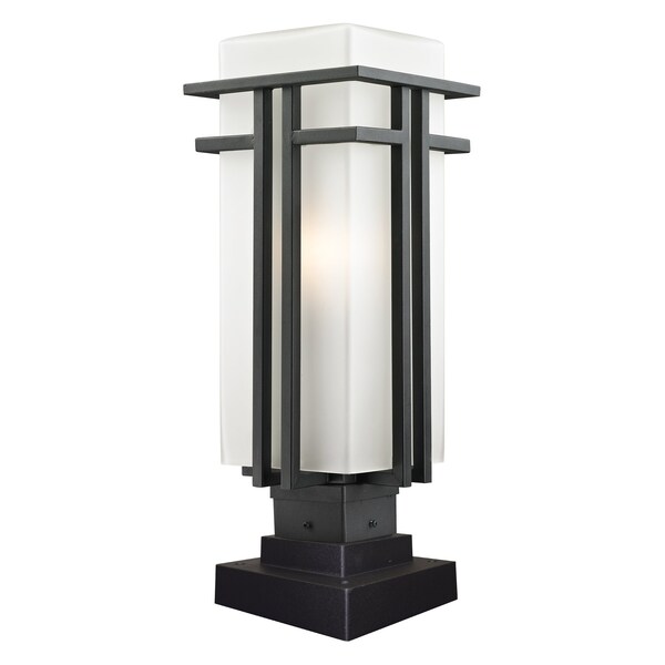 The geometric lines of the Abbey family combine well with contemporary home styling as well as homes in the craftsmen style. This large outdoor pier mount fixture is made of steel and finished in black with matte opal glass.