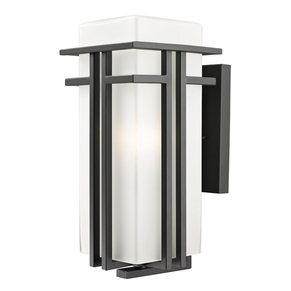 The geometric lines of the Abbey family combine well with contemporary home styling as well as homes in the craftsmen style. This large wall mount fixture is made of steel and finished in black with matte opal glass.