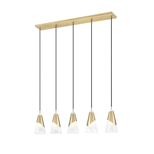 Aimie 5-Light Linear Chandelier, 6 in W, Modern Gold